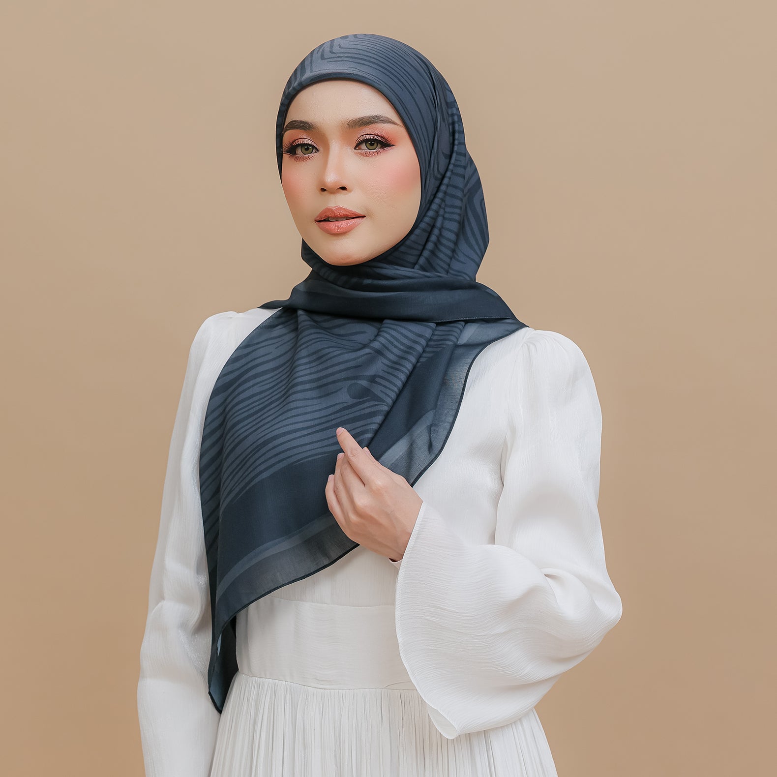 Simplicity meets sophistication in this piece from our ALUR collection. Featuring subtle, textured lines that flow gracefully across the fabric, this scarf captures modern elegance in every fold. The muted grey tone, accented with fine linear detaili