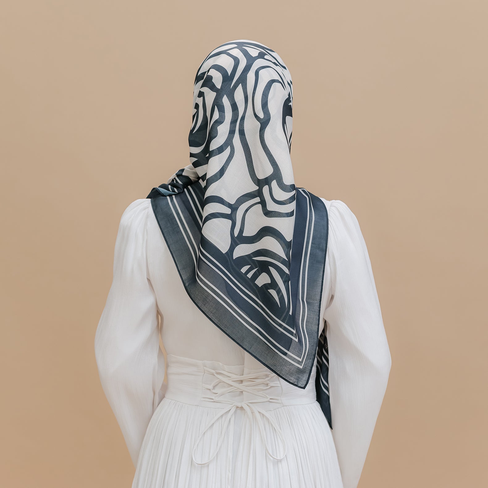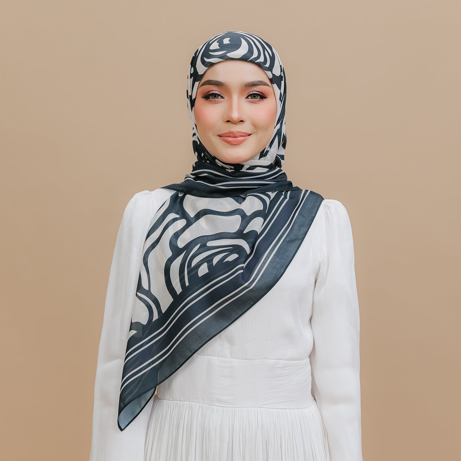 A modern expression of grace, this scarf features bold floral line art in classic ebony tones against a soft base. Lightweight, flowy, and timeless—perfect for elevating everyday elegance.